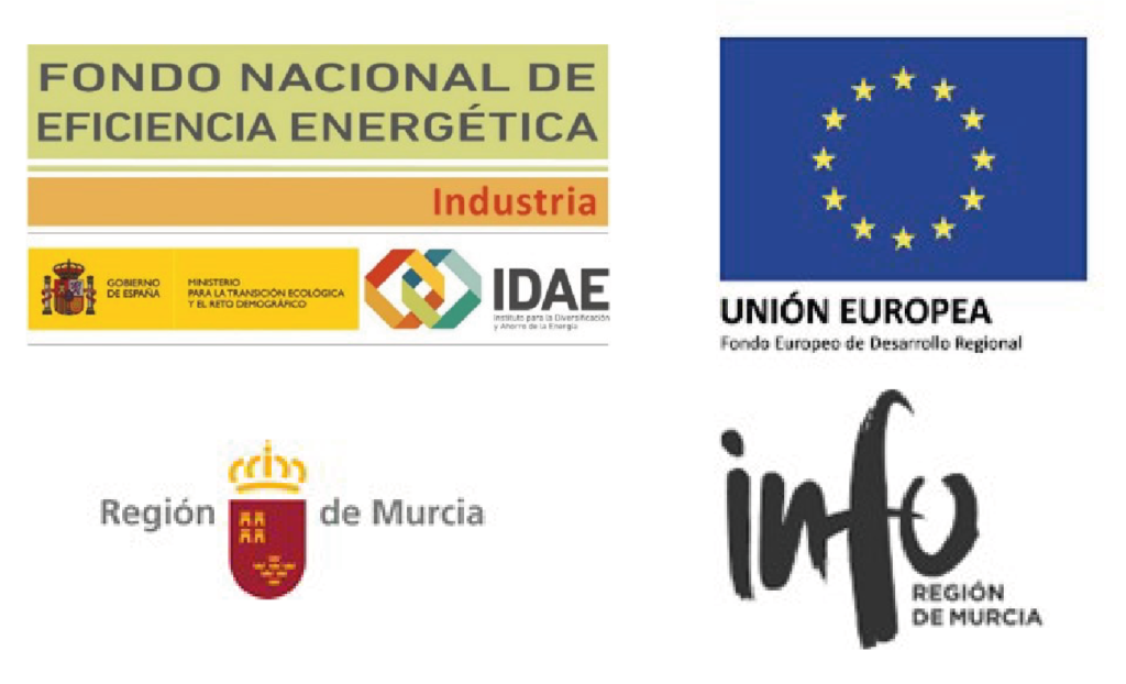 Gracias al apoyo del Fondo FEDER de la Unión Europea y al INFO de la Comunidad Autónoma de la Región de Murcia, hemos mejorado la eficiencia de los procesos eficiencia energética en procesos de fabricación de envase flexible mediante nuevos compresores y motores en nuestras instalaciones de Molina de Segura (Murcia).